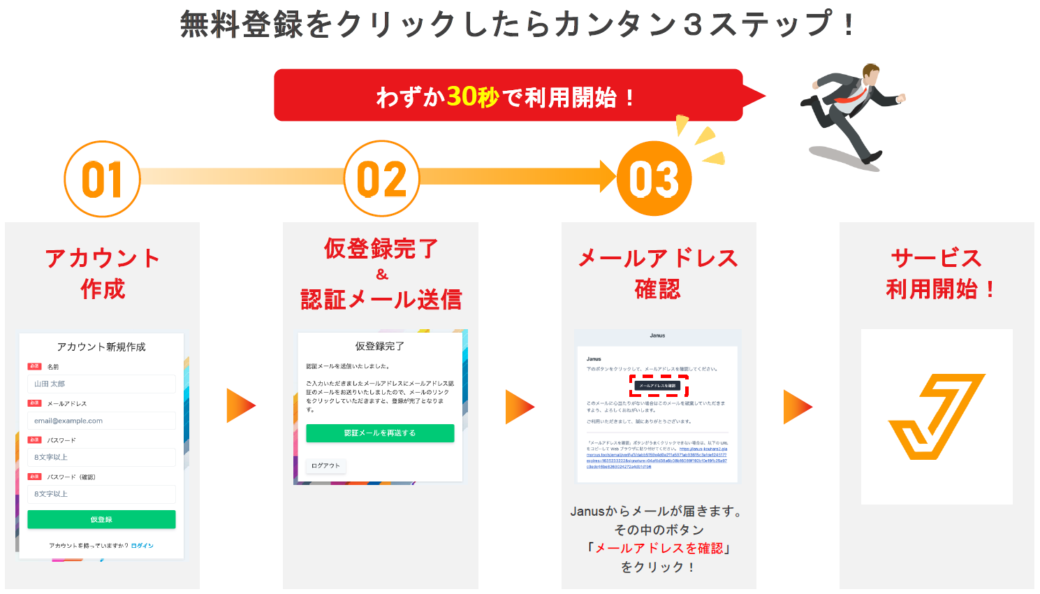 ご利用方法無料登録をクリックしたらカンタン3ステップ!